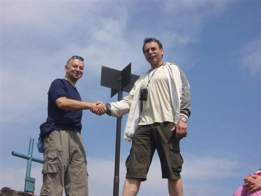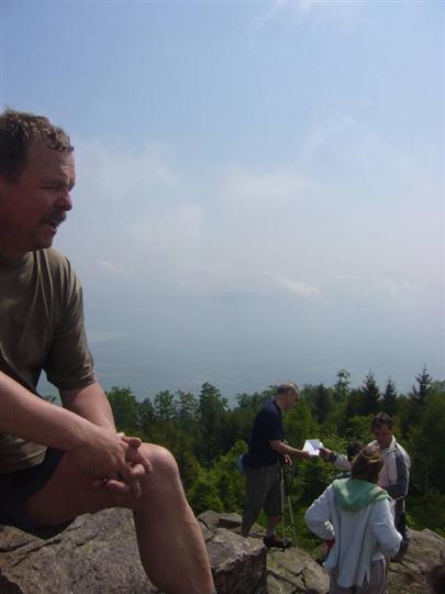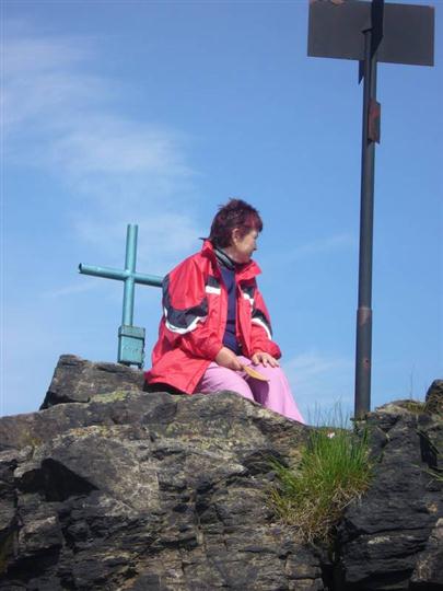 Po přímém výstupu se konečně obě skupiny po bouřlivém přivítání setkaly. Následoval krátký odpočinek, zápis do vrcholové knížky a předání blahopřání každému účastníkovi ke zdolání vrcholu. Náš obdiv si za sportovní výkon zaslouží nejen osmdesátiletý pan Göble z Německa a naše paní Anička Chumová, ale všichni, kteří nejsou pohodlní a mají radost z pohybu.