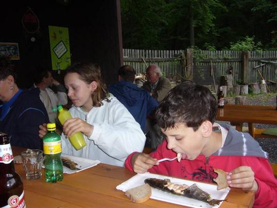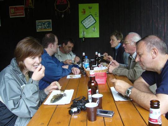 A opět následovalo rozloučení. Část výpravy se vracela domů mikrobusem a ostatní pokračovali směrem do Domaslavického údolí, kde nás U Tří tůní čekal grilovaný pstruh a vychlazené pivo. S písničkou a harmonikou jsme zakončili velmi příjemně prožitý den.