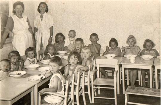 V této budově byla také mateřská škola, ve které bylo 46 dětí s učitelkami Marií Leškovou a od prosince Annou Reindlovou z Oseka. V dubnu se počet dětí školky zvýšil na 59.